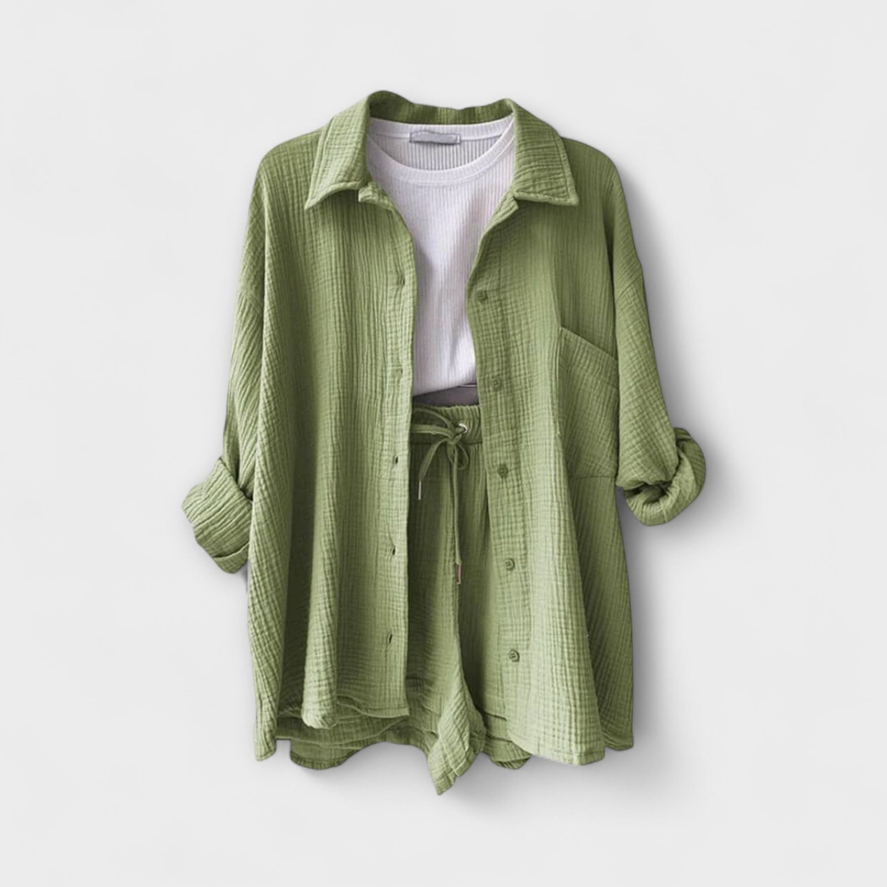 Akceptuj bezproblemową elegancję w tym dwuczęściowym zestawie—zapewniającym styl i komfort w ciepłych warunkach.